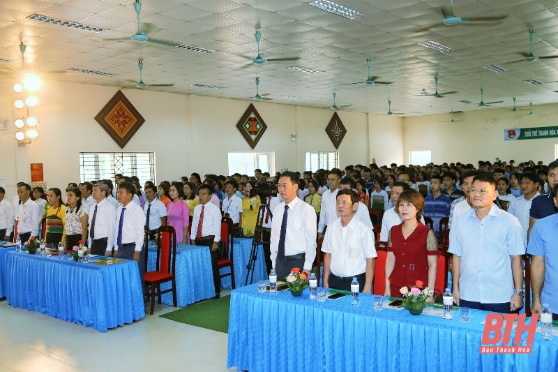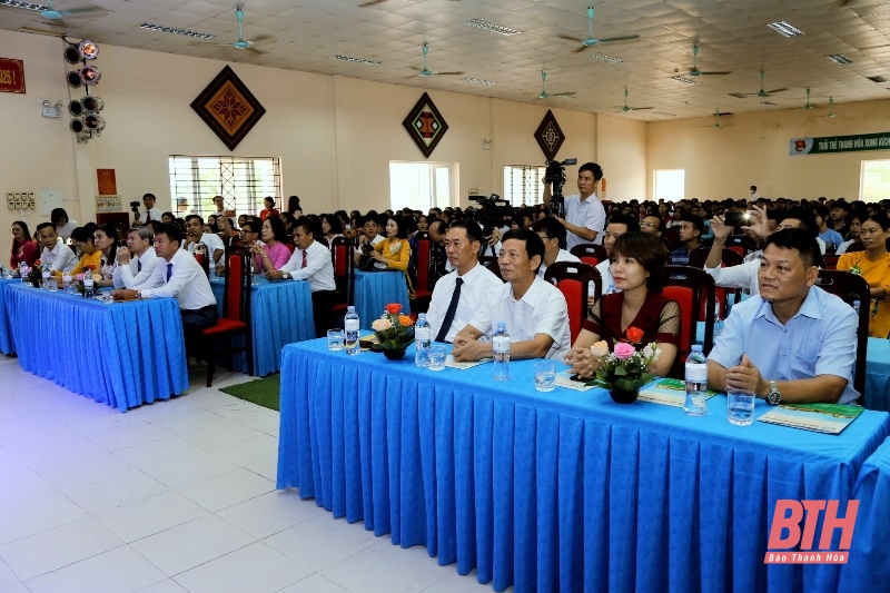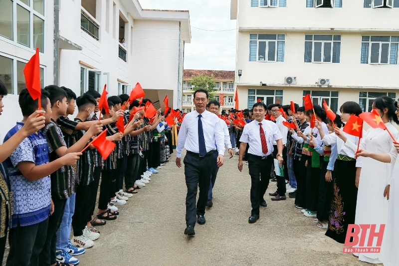 Đồng chí Phó Bí thư Tỉnh ủy Trịnh Tuấn Sinh cùng các đại biểu dự lễ khai giảng tại Trường THPT Dân tộc Nội trú Ngọc Lặc.