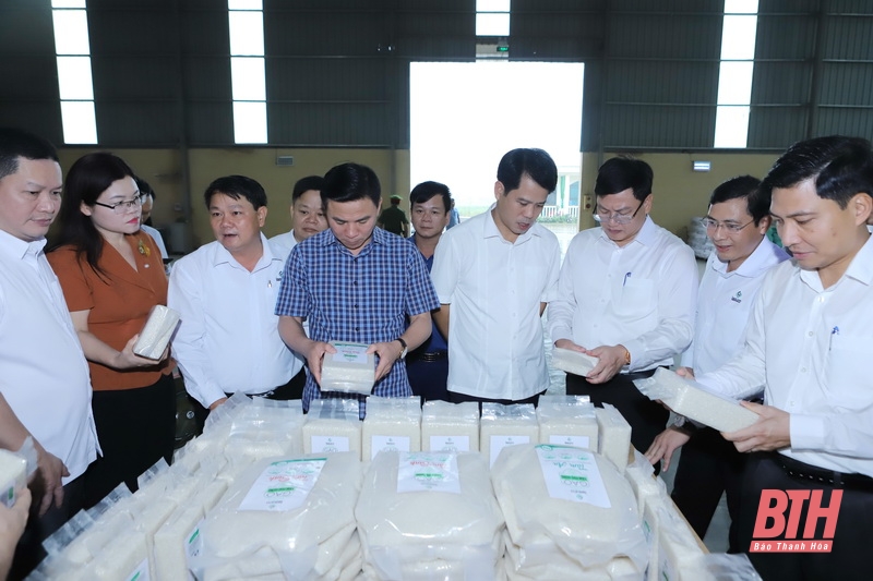 Đến thăm khu sản xuất nông nghiệp công nghệ cao thị trấn Thiệu Hóa; thăm khu sản xuất chế biến nông sản Tâm Phú Hưng, đồng chí Bí thư Tỉnh ủy chúc mừng những kết quả mà 2 đơn vị đã đạt được, đồng thời nhấn mạnh: Là đơn vị phát triển về nông nghiệp công nghệ cao và chế biến các sản phẩm lúa gạo, vì vậy cần tiếp tục phát huy kết quả đã đạt được, ứng dụng công nghệ cao, mở rộng thị trường tiêu thụ sản phẩm. Cùng với đó, cần phát triển các giống lúa đặc sản truyền thống của tỉnh Thanh Hóa; tập trung xây dựng các sản phẩm gạo chất lượng cao, thương hiệu, đủ tiêu chuẩn xuất khẩu.
