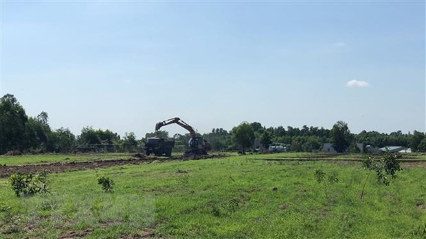 Một con đường xây dựng trái phép trên đất nông nghiệp của một dự án phân lô bán nền tại xã Tóc Tiên, Bà Rịa-Vũng Tàu đang bị lực lượng chức năng phá bỏ. (Ảnh: TTXVN phát)