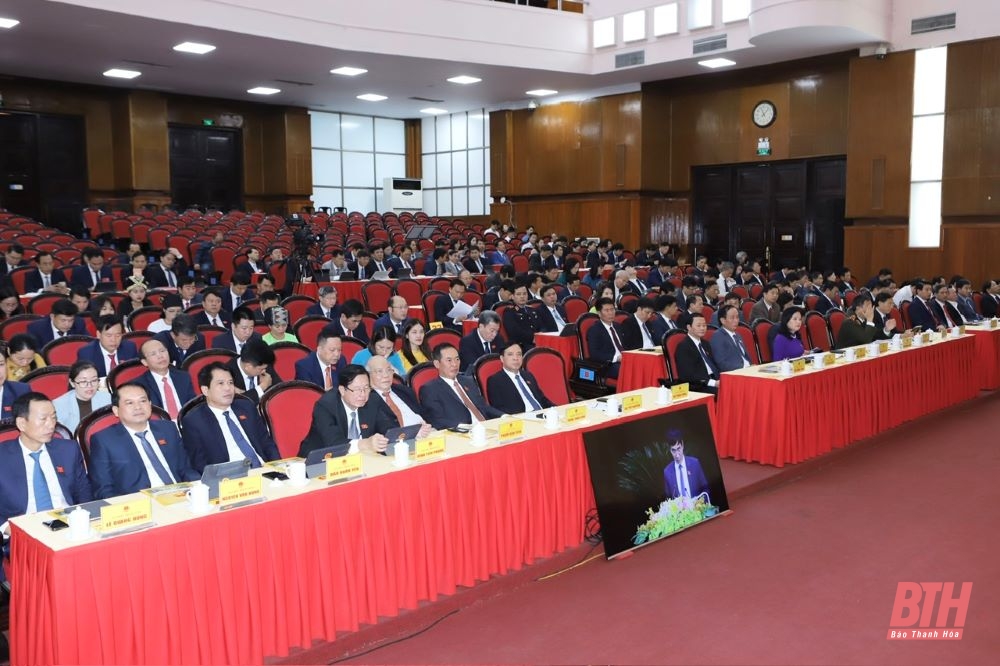 Các đồng chí lãnh đạo tỉnh, nguyên lãnh đạo tỉnh, đại biểu HĐND tỉnh khóa XVIII, lãnh đạo các sở, ngành, huyện, thị xã, thành phố trong tỉnh dự phiên khai mạc kỳ họp.