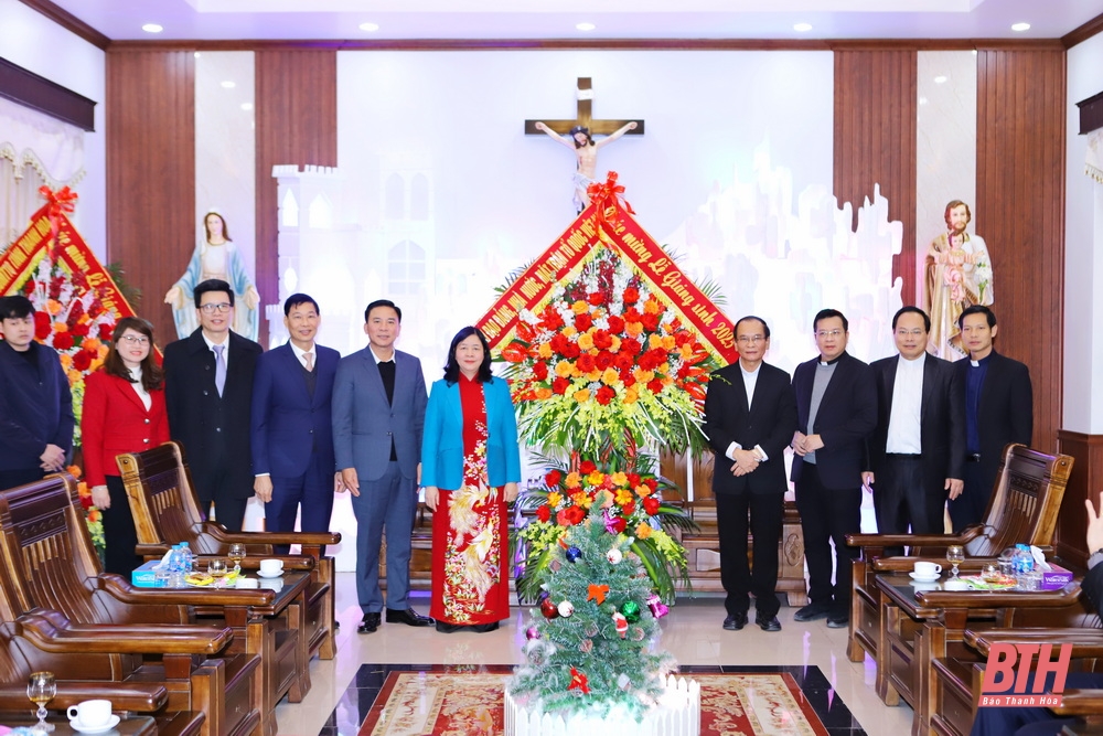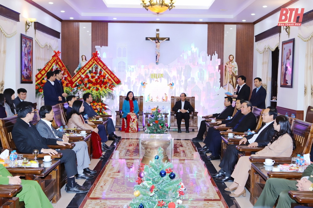 Trưởng Ban Dân vận Trung ương Bùi Thị Minh Hoài và các đồng chí lãnh đạo tỉnh Thanh Hóa đến thăm, chúc mừng Giám mục Nguyễn Đức Cường, Giám mục Giáo phận Thanh Hóa nhân dịp lễ Giáng sinh năm 2023.