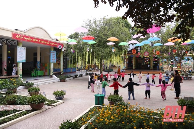 Một hoạt động bên ngoài lớp học của cô, trò Trường Mầm non Đồng Lương (Lang Chánh).