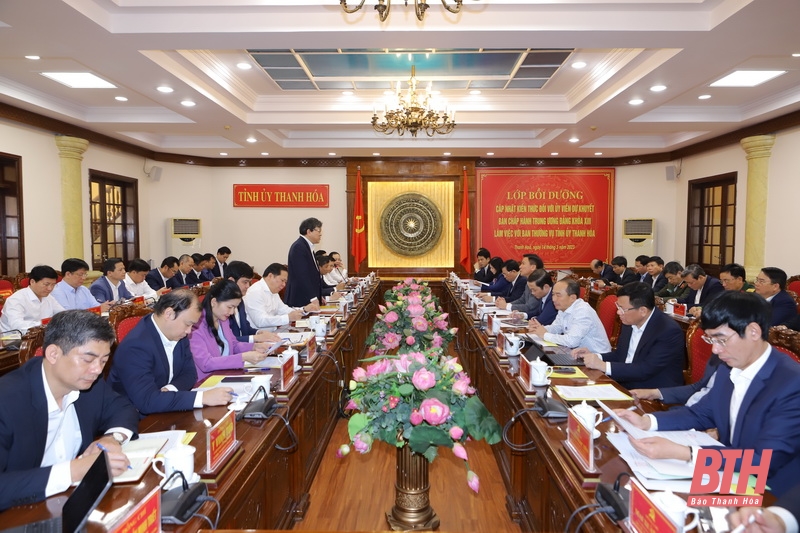 Ngày 14-3, Đoàn công tác Lớp bồi dưỡng, cập nhật kiến thức đối với các đồng chí Ủy viên dự khuyết Trung ương Đảng khóa XIII do PGS, TS Nguyễn Duy Bắc, Phó Giám đốc Thường trực Học viện Chính trị Quốc gia Hồ Chí Minh làm trưởng đoàn, đã có buổi làm việc với Ban Thường vụ Tỉnh ủy Thanh Hóa về tình hình kinh tế - xã hội, quốc phòng - an ninh, công tác xây dựng Đảng và hệ thống chính trị từ đầu nhiệm kỳ Đại hội Đảng bộ tỉnh lần thứ XIX đến nay; tình hình triển khai thực hiện Nghị quyết số 26-NQ/TW, ngày 3-11-2022 của Bộ Chính trị và nhiệm vụ trọng tâm trong thời gian tới.