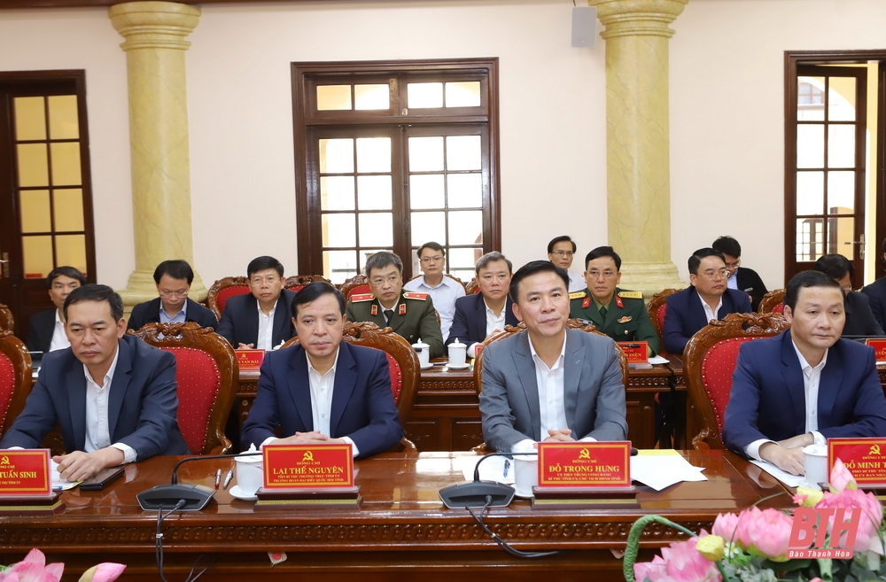 Các đồng chí Ủy viên Ban Thường vụ Tỉnh ủy Thanh Hoá và lãnh đạo sở, ban, ngành dự buổi làm việc.