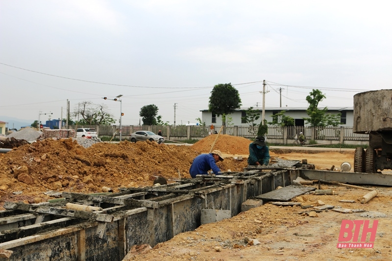 Thi công dự án hạ tầng kỹ thuật khu dân cư tại thị xã Nghi Sơn. Ảnh: Việt Hương