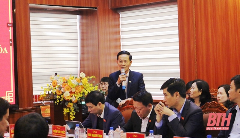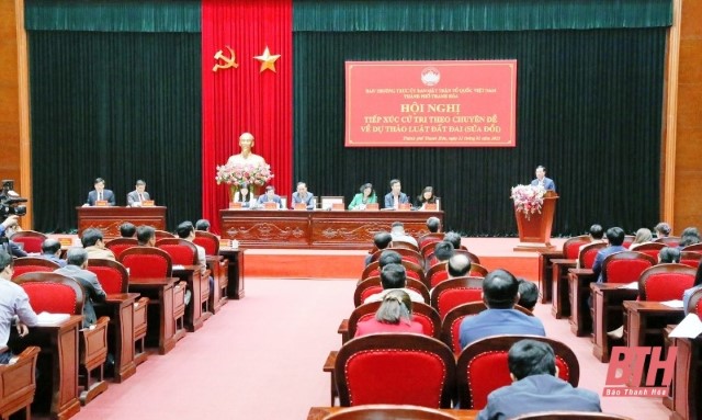 Đoàn ĐBQH tỉnh tiếp xúc cử tri TP Thanh Hóa theo chuyên đề góp ý Dự thảo Luật Đất đai (sửa đổi). Ảnh: Quốc Hương