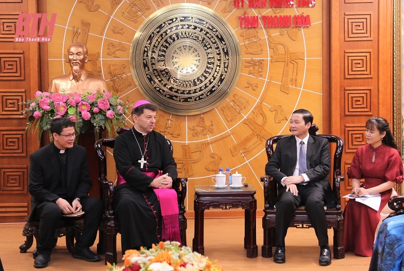 Chủ tịch UBND tỉnh Đỗ Minh Tuấn tiếp Đức Tổng Giám mục Marek Zalewski, đại diện Tòa Thánh Vatican không thường trú tại Việt Nam.