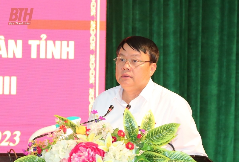 Đồng chí Phó Bí thư Thường trực Tỉnh ủy, Trưởng đoàn ĐBQH tỉnh cũng đã thông tin tới cử tri về tình hình thời sự quốc tế; kinh tế - xã hội của đất nước; những kết quả nổi bật trong phát triển kinh tế - xã hội, đảm bảo quốc phòng - an ninh, công tác xây dựng Đảng và hệ thống chính trị của tỉnh trong 6 tháng năm 2023 và nhấn mạnh: Những kết quả mà tỉnh đã đạt được trong 6 tháng năm 2023 là công sức của toàn Đảng bộ, chính quyền và Nhân dân các dân tộc trong tỉnh, trong đó có sự đóng góp của Đảng bộ, chính quyền và Nhân dân huyện Ngọc Lặc.